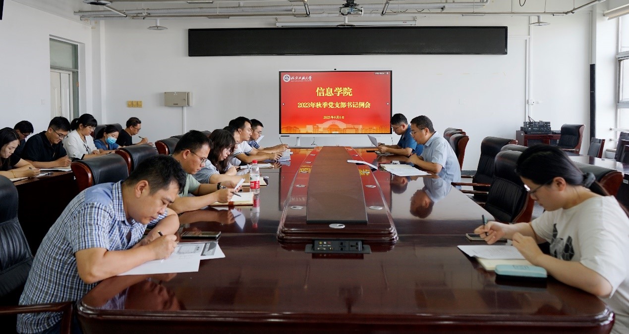 为了深入开展学习贯彻习近平新时代中国特色社会主义思想主题教育落实落细,强化基层党组织建设,9月6日下午,信息学院新学期党支部书记例会在瀚学楼1014会议室召开。会议由学院党委书记王伟宾主持,学生党支部书记参加。