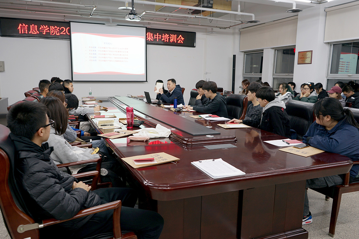 为进一步规范组织发展程序,加强新发展党员理想信念教育、政治纪律和政治规矩教育,近期,信息学院对2019年秋新发展党员进行了集中培训。培训分为党课辅导、各支部组织学习研讨、党员自学、知识小测等环节。